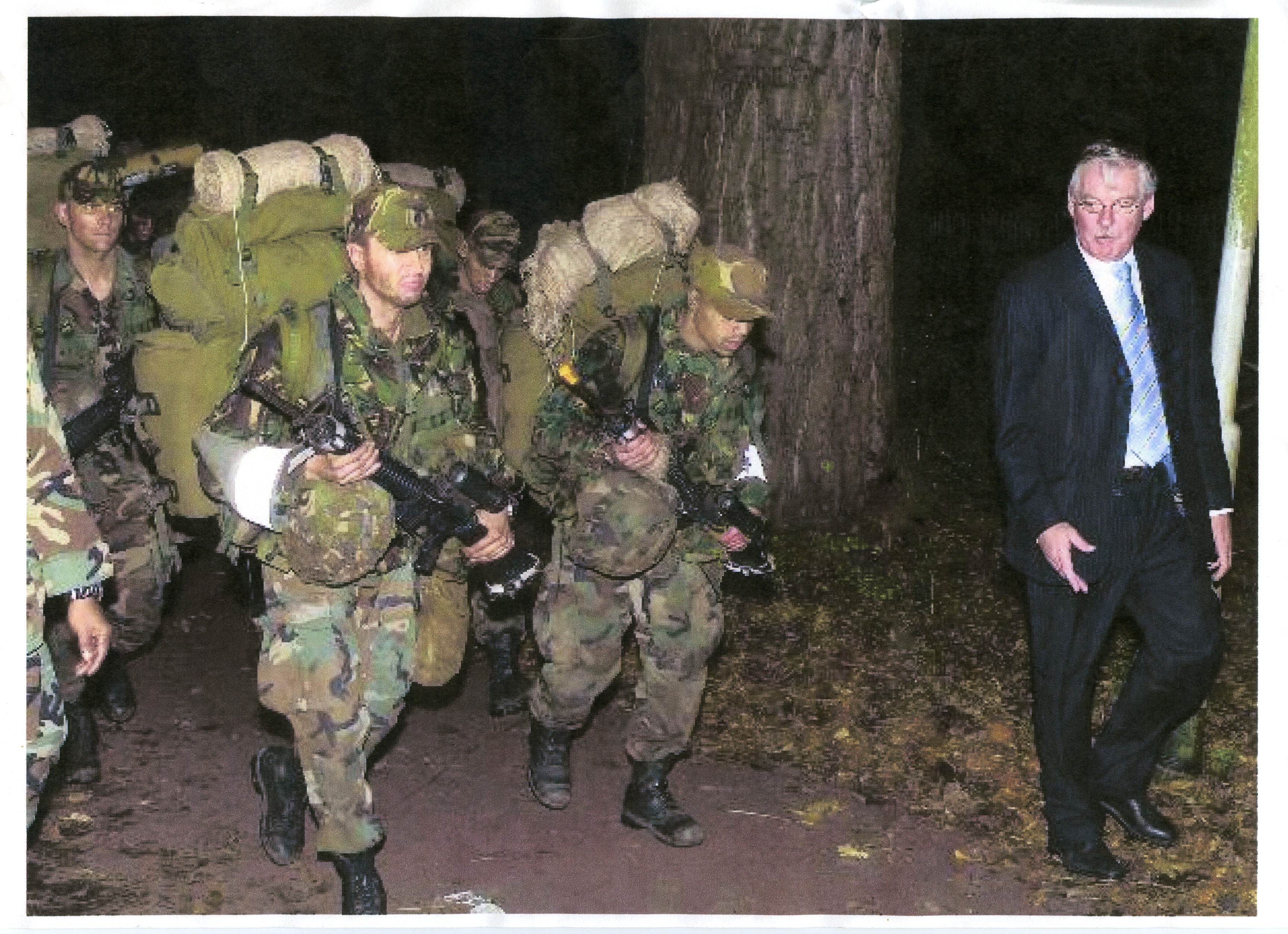 Merijn Camfferman, een leerling van AIHATO die gestopt is om bij het corps mariniers te gaan, is geslaagd voor zijn opleiding! Hij is nu officieel marinier 1. Van de 150 mensen die de opleiding zijn begonnen zijn er na 7 maanden 54 beedigd. Dit is een hele prestatie. Hij is geplaatst bij de operationele eenheden in Doorn. Van de Finex, de eindoefening waarbij er 6 dagen loodzware oefeningen worden gedaan, en niet wordt geslapen, is de volgende foto geplaatst in het rotterdams AD. Merijn links vooraan, met de vette baard en stoere blik, samen met staatssecretaris van Defensie C. van der Knaap.