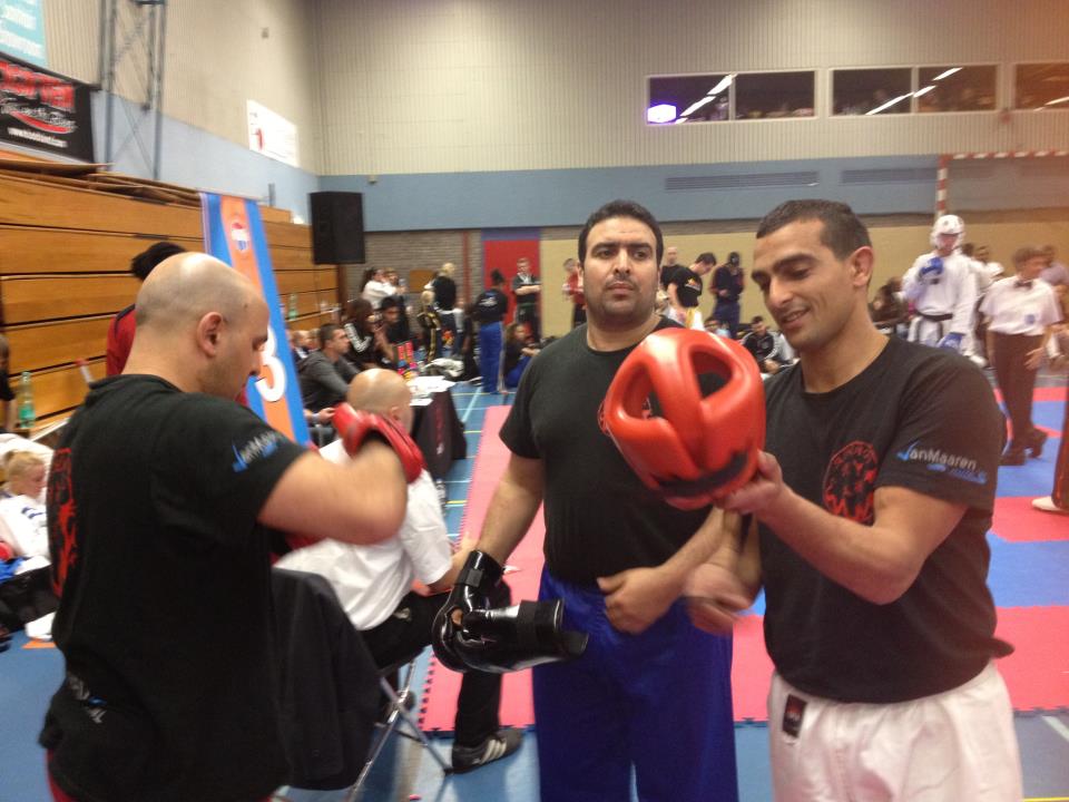 Zaterdag 28 april 2012 reisden Fouad, Hafid en Aissa naar Amstelveen om daar mee te doen aan een WAKO toernooi. Om weer eens sfeer op te proeven en te kijken of de oude garde nog een beetje mee kan komen met de jonkies. We hadden ons ingeschreven voor het punt-stop systeem en daar gaat het er normaal gesproken wel snel aan toe. Eenmaal aangekomen zagen we hoe druk bezet het toernooi was. Het was een Dutch Open, met veel deelnemers uit omliggende landen zoals Duitsland, Engeland, Belgie en Polen. De eerste kriebels begonnen al te komen. Vooral toen we de jeugd bezig waren. Een hoog niveau, benen die alle kanten op gingen, voetenwerk waar je ‘u’ tegen zegt, snelheid …. zeg maar alles waar we nu een ietsiepietsie meer moeite mee hebben … Dus dat beloofde wat voor later die dag.