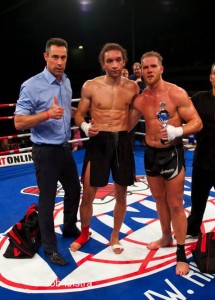 In het hoofdprogramma vocht Guillermo Ronodimedjo zijn 2e MMA pro partij tegen Jawaad Hoessein van Kops Gym. We verwachtten een worstelaar en die kregen we ook. In de eerste ronde domineerde Guillermo sterk met een langdurige ground en pound. In de 2e ronde ging de ronde meer gelijk op en moesten de heren zich opmaken voor een extra 3e ronde. Guillermo had echter veel last van zijn nek door de stoten die hij daarop kreeg in de 2e ronde. Guillermo kon helaas niet doorgaan en moest aangeven dat hij niet aan de 3e ronde kon beginnen. Helaas moest Guillermo zijn eerste verliespartij incasseren.